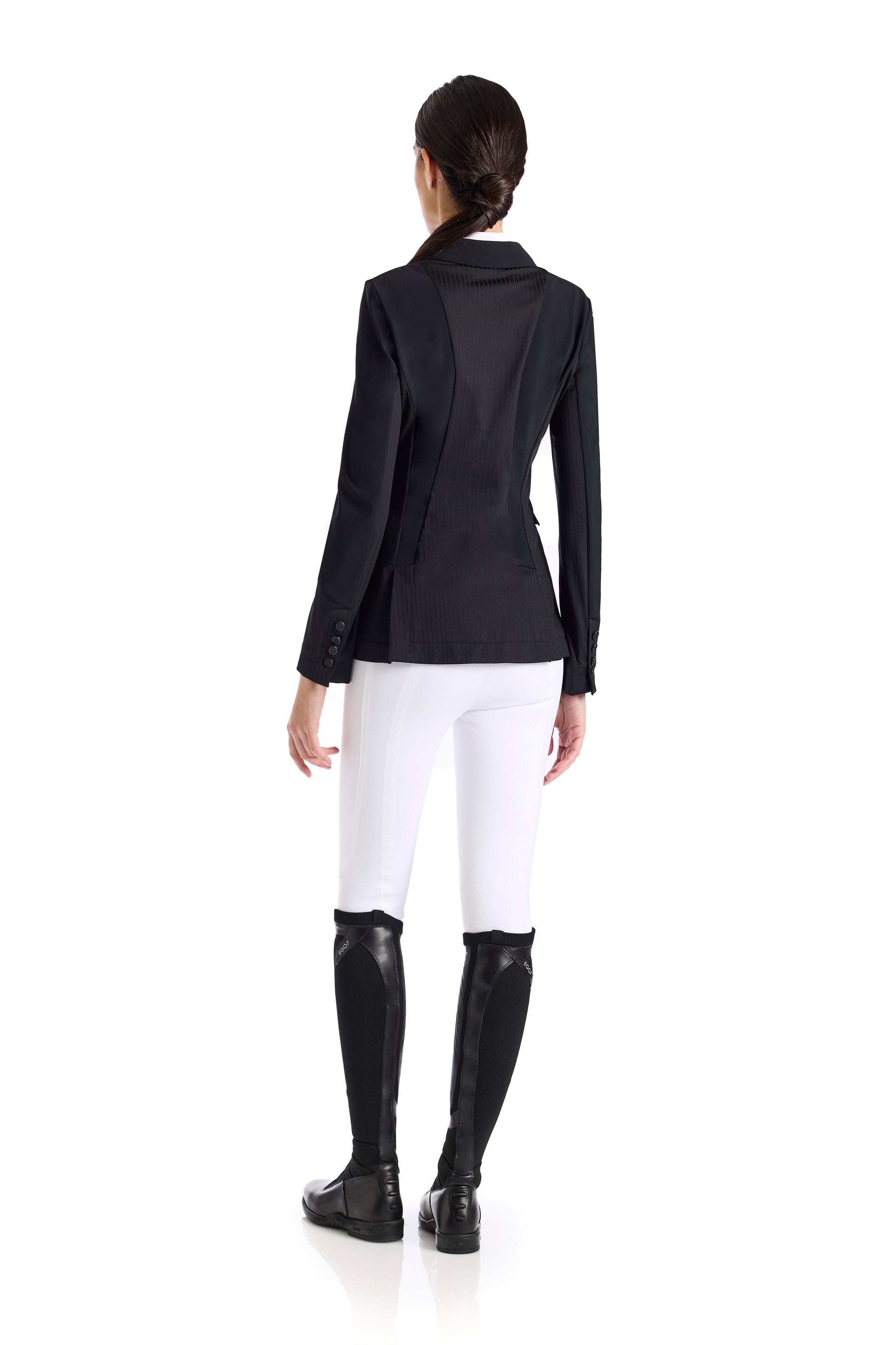 EGO7 Ribbed Show Jacket – a pinnacle of elegance and performance. Crafted with meticulous attention to detail, this jacket boasts ribbed panels accents that add a touch of sophistication to its design. With front pockets for convenience, tailored fit that seamlessly combines style and functionality. Made from a premium technical fabric, 4-way stretch, breathable and lightweight, it offers unparalleled comfort and freedom of movement, making it perfect for equestrian competitions or any upscale event. Timeless charm and superior quality guaranteed